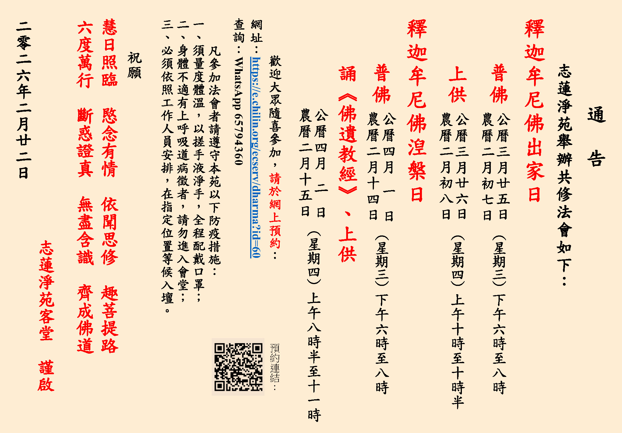 釋迦牟尼佛出家日、涅槃日法會