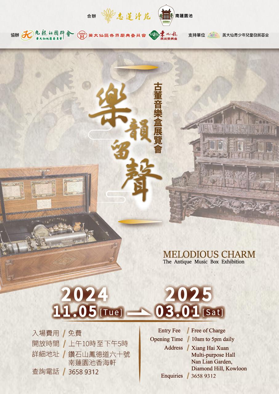 展覽簡介:活動假南蓮園池香海軒向公眾展示約75組具有120至200年史的古典音樂盒,以唐式園藝配合西式古董,借此特顯香港中西文化融合的特質。今次展示的古董音樂盒是由收藏家...